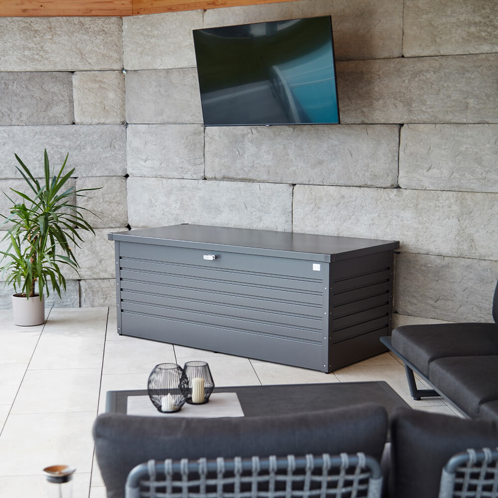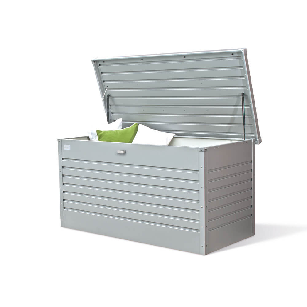 Die Gartenbox steckt locker all das weg, wofür Sie keinen geeigneten Aufbewahrungsort haben. Ideal zum Verstauen von Sitzkissen, Sonnenliegen, Klappstühlen, Spielzeug, Sport- und Campingutensilien. Die ideale Aufbewahrungsbox für allerlei Krimskrams im Freien! Durch hochwertige Materialien eine dauerhafte Lösung.