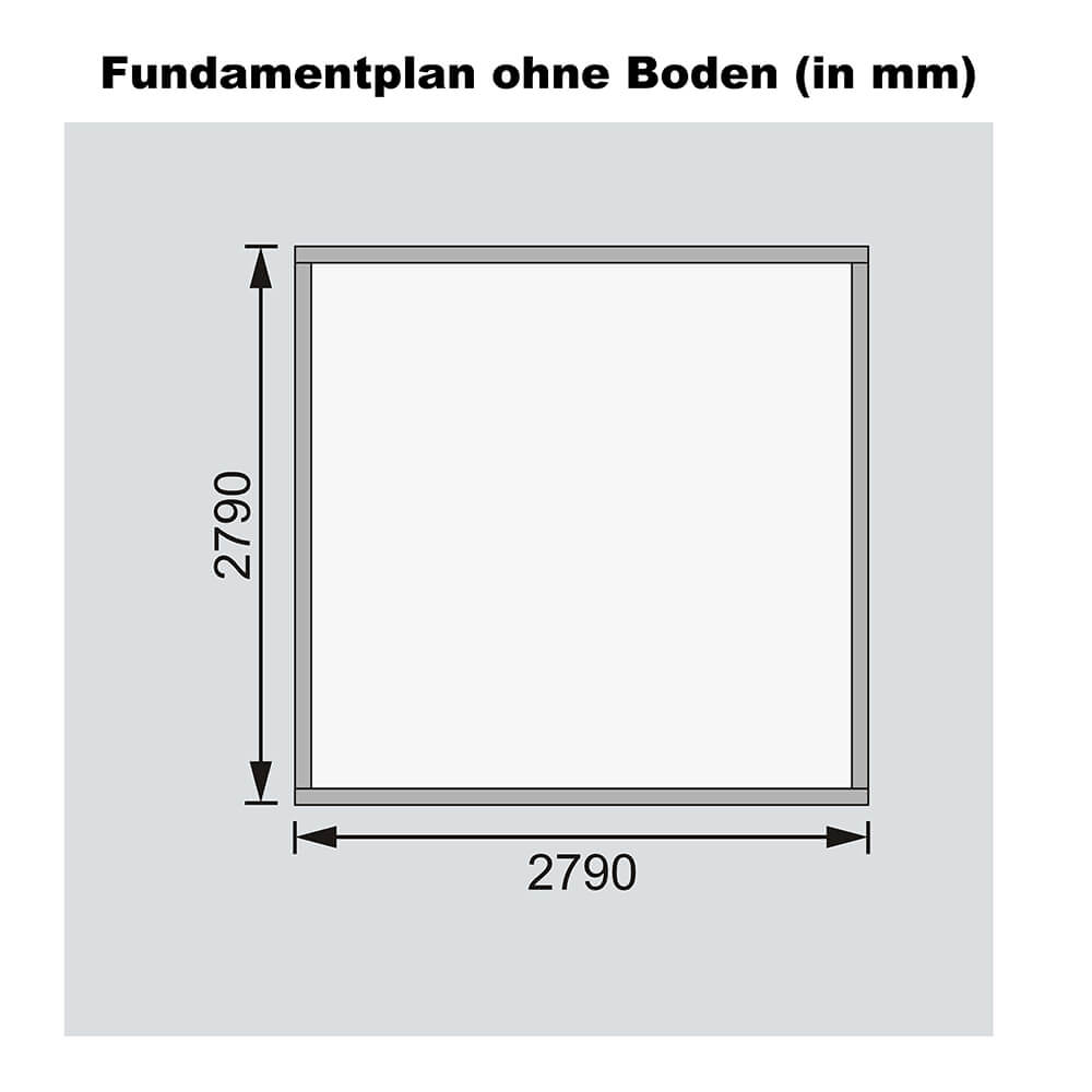 - Sockelmaß: B 280 x T 280 cm