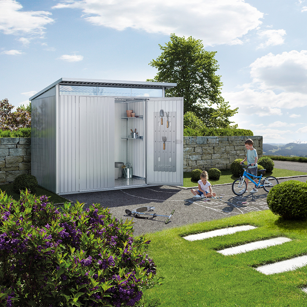 Das AvantGarde® ECO macht seinem Namen alle Ehre. Es ist ein äußerst stabiles Metallgerätehaus, das den Ansprüchen moderner Architektur gerecht wird. Sein gefälliges Aussehen und seine vielen praktischen Vorzüge für den täglichen Gebrauch garantieren ungetrübte Freude. Die lebenslange Wartungsfreiheit spart Geld und kostbare Freizeit. Der attraktive Preis der ECO-Variante wird dadurch ermöglicht, dass sie im Vergleich zum klassischen AvantGarde® keine Grundausstattung beinhaltet. Selbstverständlich gelten abgesehen davon dieselben hohen Qualitätsstandards der Biohort-Produkte.