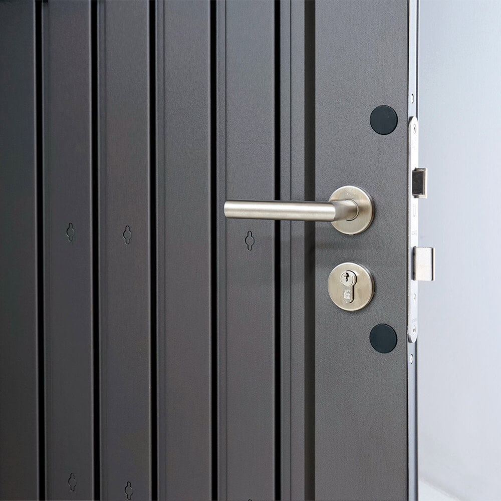 - Edelstahl-Drückergarnitur mit Normzylinder und 3-fach Verriegelung