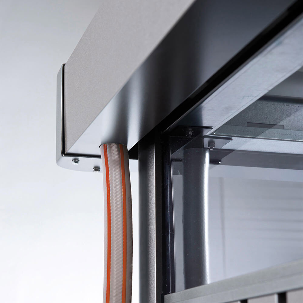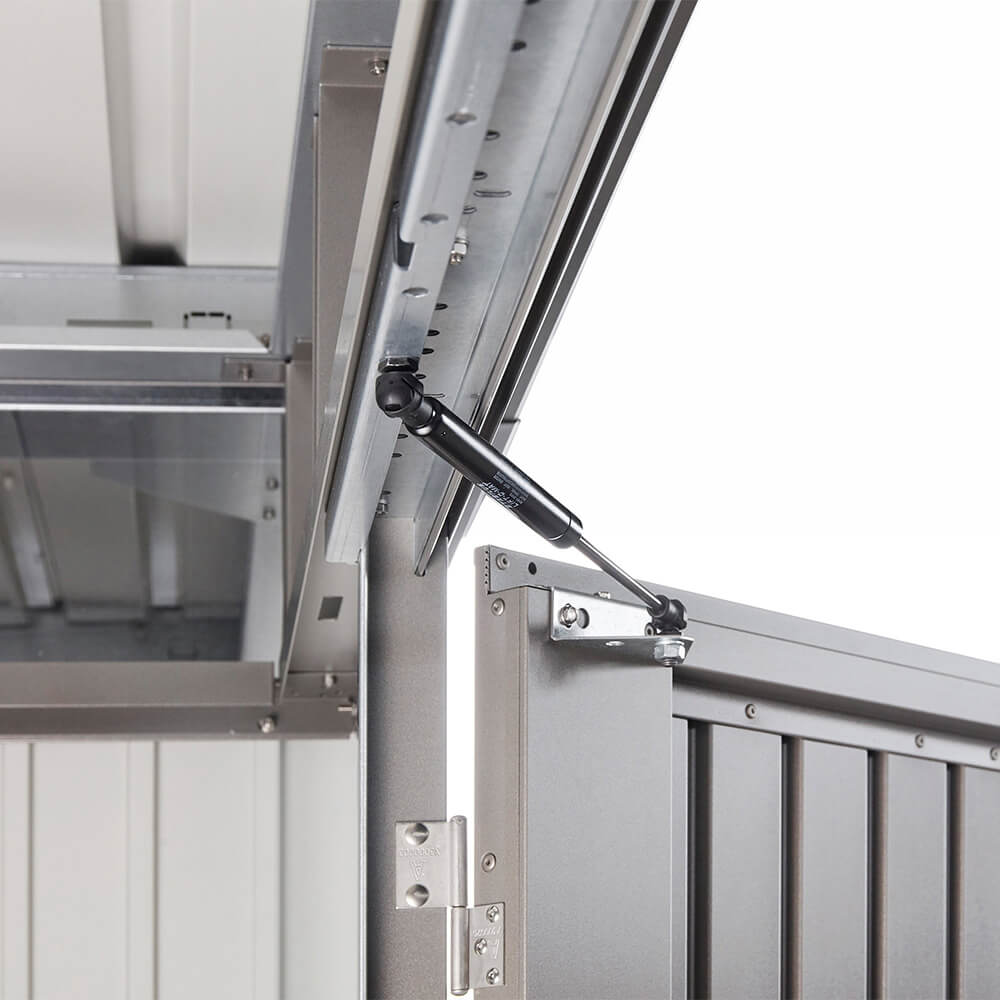 - Gasdruckfeder - komfortables Öffnen und Schließen des Türflügels, hält diesen in geöffneter und geschlossener Position