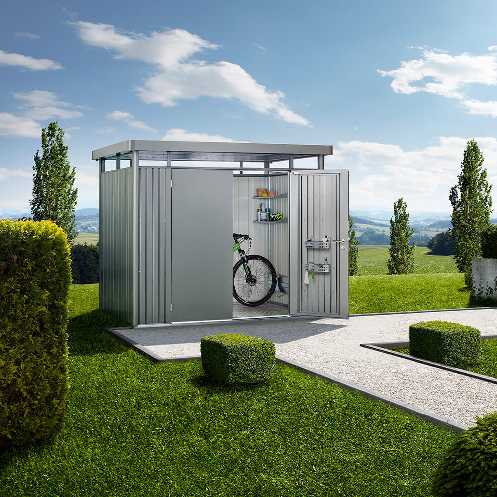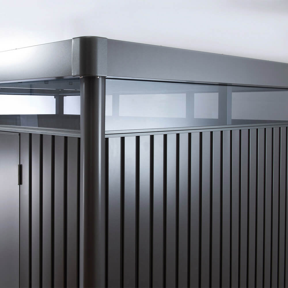 Für alle, die hinsichtlich Qualität und Design das Beste suchen – das von Industriedesignern entworfene Top-Produkt von Biohort. Das moderne Flachdach und die integrierte Rundum-Oberlichte machen das HighLine® zu einer Augenweide. Für die optimale Sicherheit sorgt die 3-fach Verriegelung mit Zylinderschloss. Der Türflügel wird mittels Gasdruckfeder halbautomatisch geöffnet und geschlossen. Das Gerätehaus HighLine® ist absolut wartungsfrei.