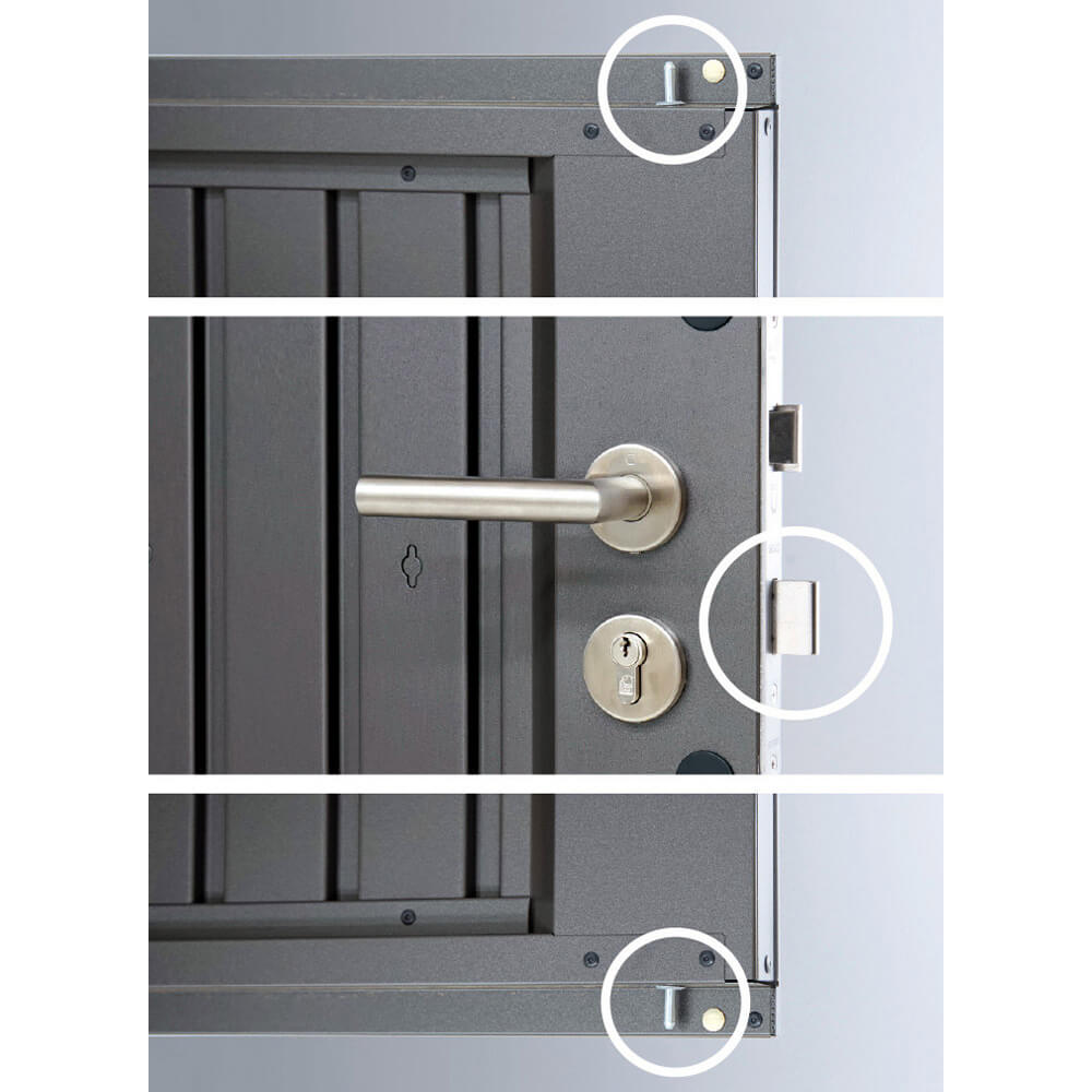 - Beste Materialien: feuerverzinktes, polyamid-einbrennlackiertes Stahlblech, Schrauben und Scharniere aus Edelstahl