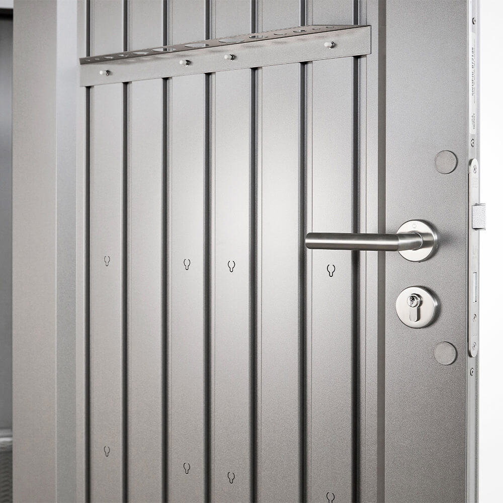 - Beste Materialien: feuerverzinktes, polyamid-einbrennlackiertes Stahlblech, Schrauben und Scharniere aus Edelstahl