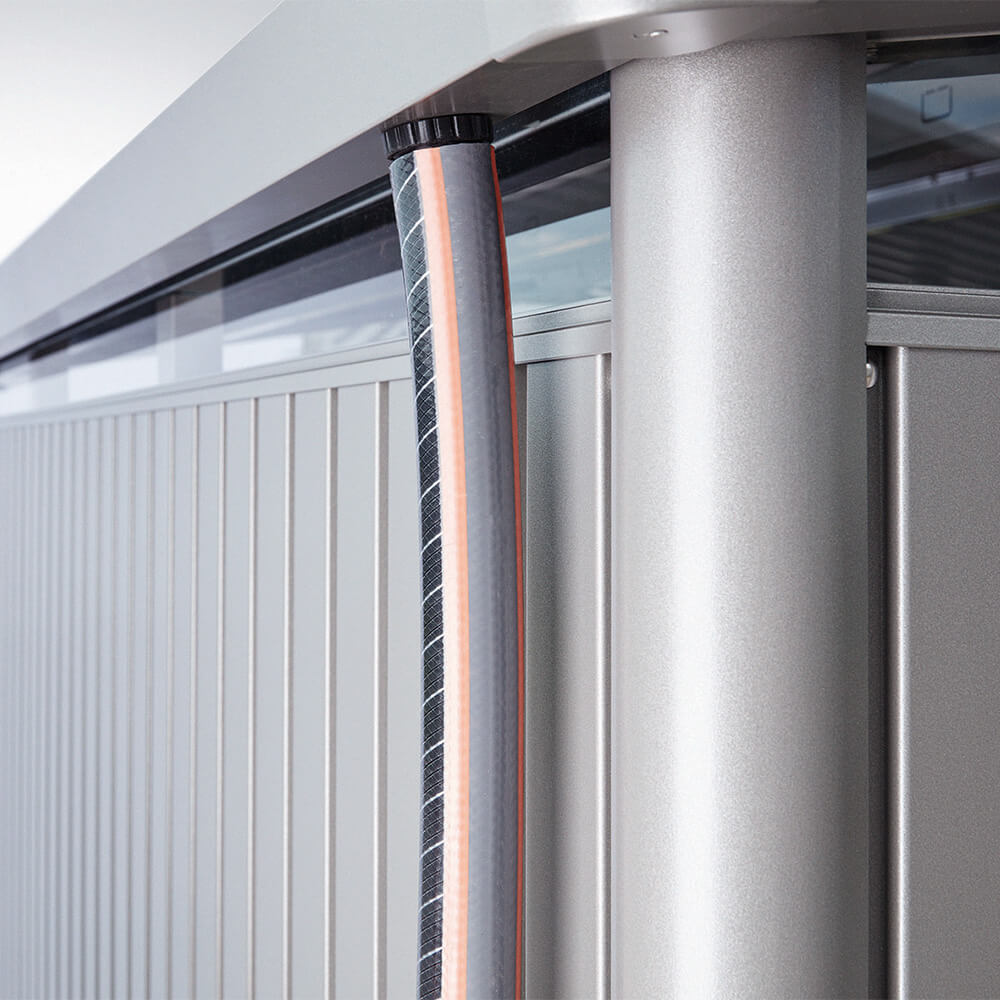 Die umlaufende Oberlichte aus Acrylglas verleiht dem Gerätehaus Panorama eine moderne Leichtigkeit, mit der sich dieses Satteldachmodell flexibel in jedes Gartenumfeld einfügt. Die bewährte Biohort Qualität in Material und Verarbeitung sowie die individuellen Ausstattungsoptionen und die verschiedenen Größenvarianten machen das Panorama zum perfekten Gerätehaus für hohe Ansprüche.