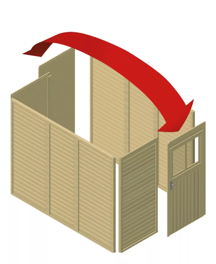 Geräteraum für die Karibu Einzelcarports bestehend aus 19mm Softline-Profilen, zum Einbau zwischen den Pfosten. Die Doppelflügeltür ist variabel positionierbar.