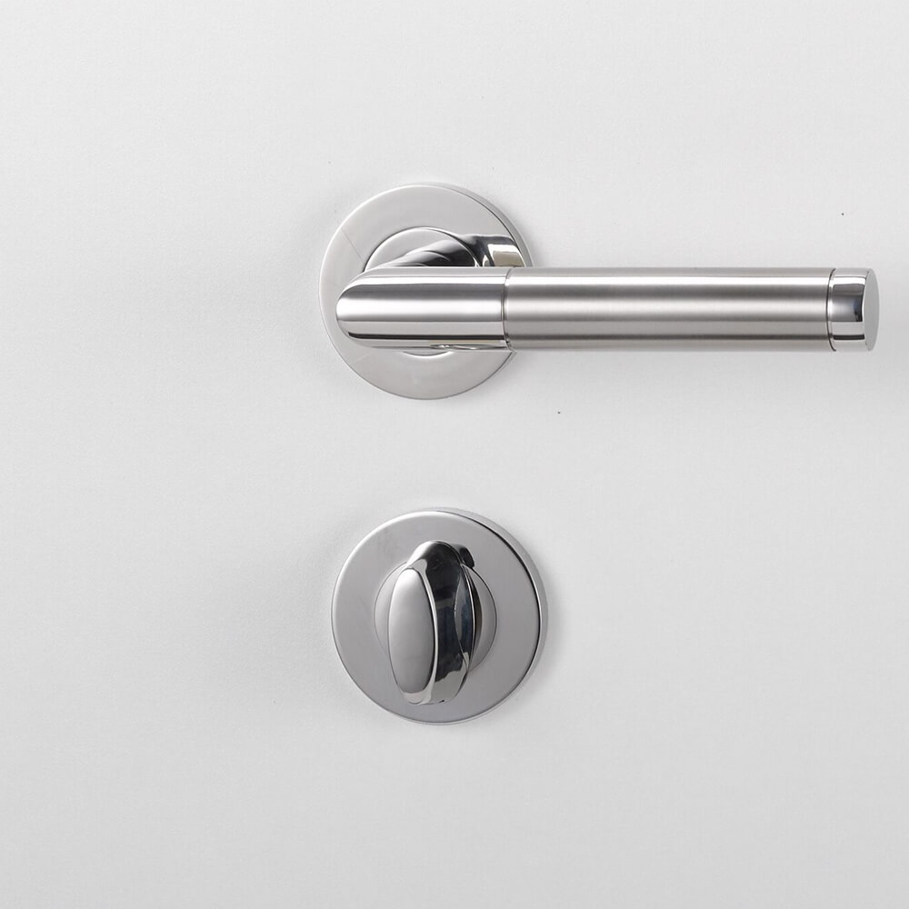 - Schraubrosette in Edelstahl - unsichtbare Verschraubung und geschnittenes Feingewinde - wartungsfreies, unsichtbares Gleitlager (kein schwarzer Ring) - gegenläufige M4-Verschraubung - festdrehbar gelagerter Türgriff - vormontierter Türgriff - beid