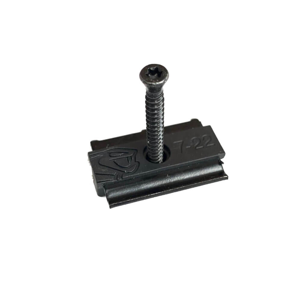Dann benutzen Sie in der Fläche diesen Hybrid Clip 7 - 22 für jeden Kreuzungspunkt zwischen Diele und Unterkonstruktion. Passgenau für die seitlichen Nuten Ihrer neuen Dielen sind die Klammern einfach zu befestigen und sorgen gleichzeitig für einen einheitlichen Fugenabstand.