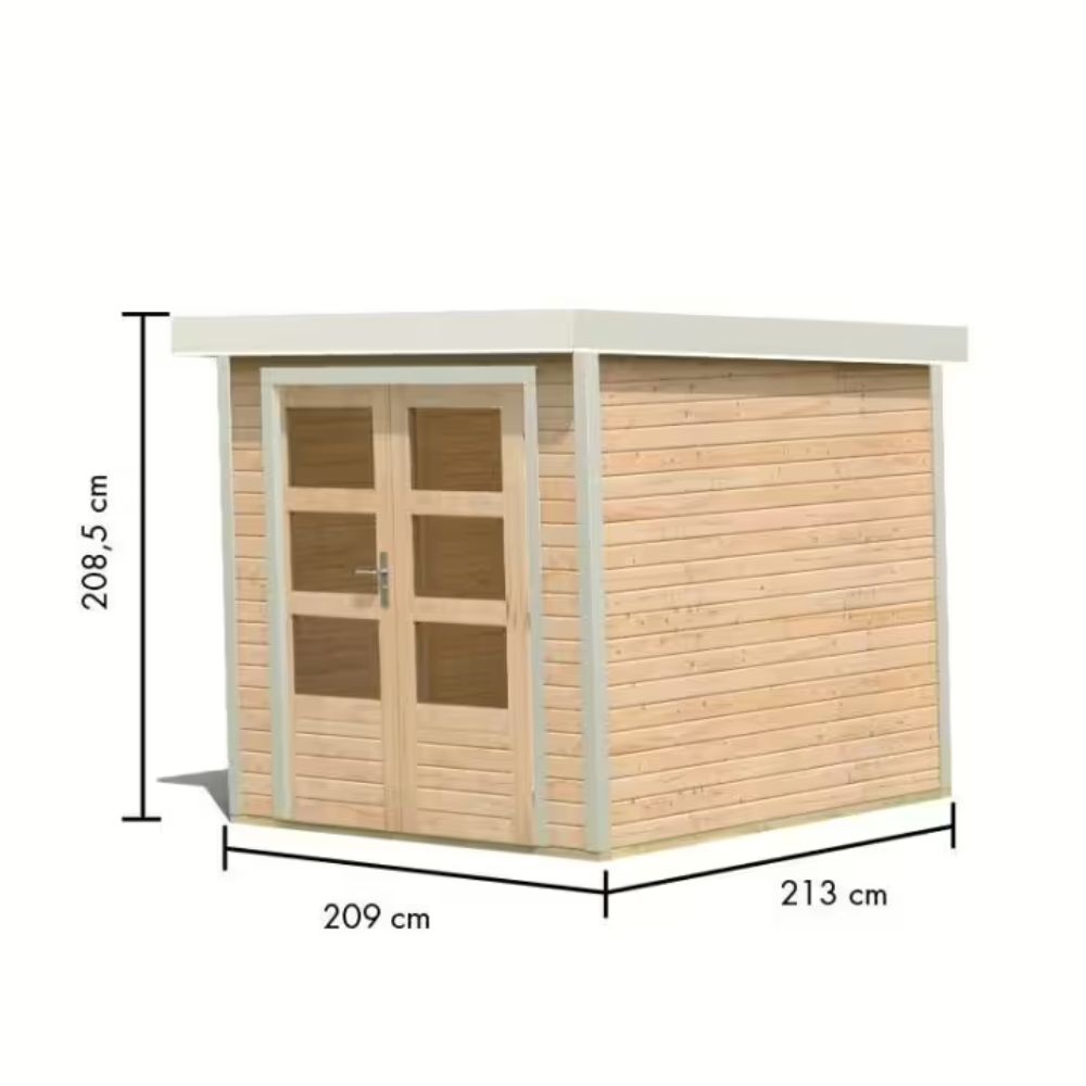 Die Montage ist einfach und für DIY-Heimwerker geeignet. Mit klaren Anweisungen können Sie Ihr Gartenhaus problemlos aufbauen und stolz auf Ihr eigenes Werk sein. Dank der Verwendung von Metall an den Ecken und dem Dach ist das Gartenhaus langlebig, stabil und schützt vor Witterungseinflüssen. Es wird Ihnen über viele Jahre hinweg zuverlässigen Schutz bieten. Das moderne Design des Metall-Holzgartenhauses verleiht Ihrem Garten eine zeitgemäße Optik. Die Kombination aus Holz und Metallelementen ist ein Blickfang für Besucher.