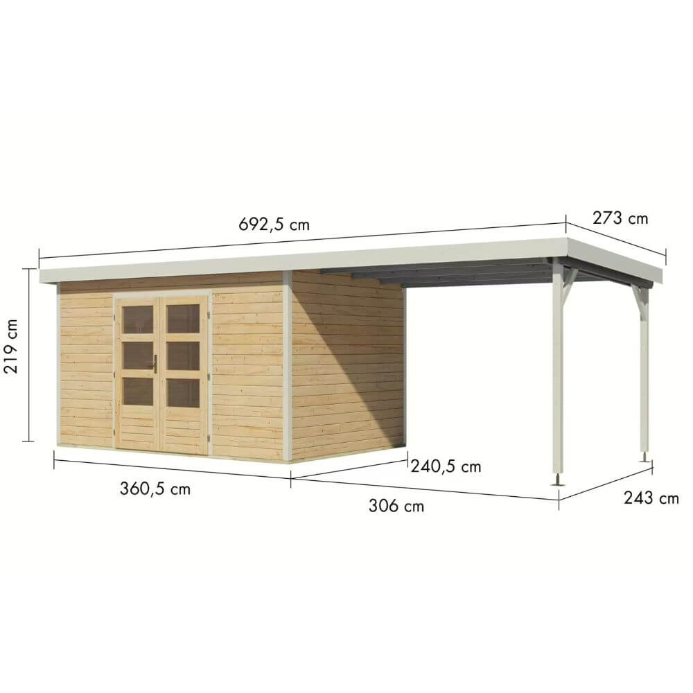 Mit dem optionalen Anbaudach erhalten Sie zusätzlichen Stauraum und erweiterte Nutzungsmöglichkeiten als Gartenlounge. Machen Sie es zu Ihrem persönlichen Rückzugsort.