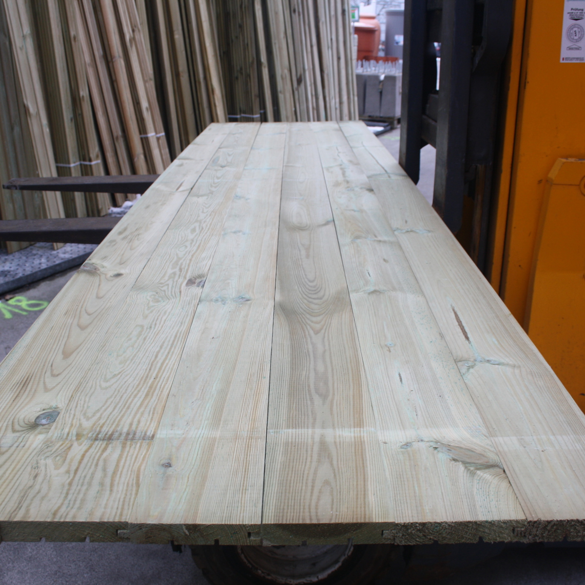 Das einseitig gehobelte Holz ist beim Holzbau im Außenbereich sehr beliebt. Aufgrund der simplen Verlegung mit Nut und Feder erstellen Sie schnell und einfach eine geschlossene Holzfläche.