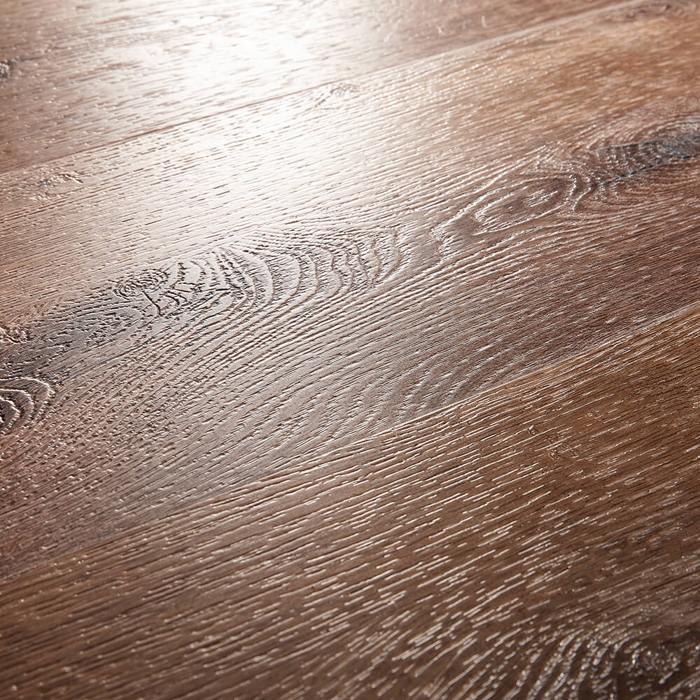 Die Oberfläche dieses erstklassigen Vinyl Designbodens ist Synchrongeprägt. Was bedeutet, dass das aufgedruckte Holzbild durch eine der Maserung folgenden Textur unterstützt wird und somit optisch und haptisch kaum noch von echtem Holz zu unterscheiden ist. Für ein angenehmes Wohlgefühl sorgt die fußwarme Nutzschicht mit einer Dicke von 0,55 mm, welche besonders positiv auffällt, wenn der Boden barfuß begangen wird. Zudem besitzt das Produkt eine integrierte Trittschalldämmung aus Kork.
