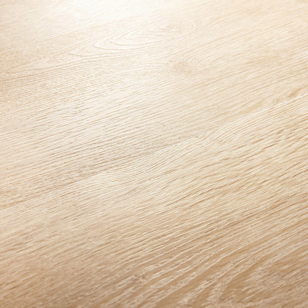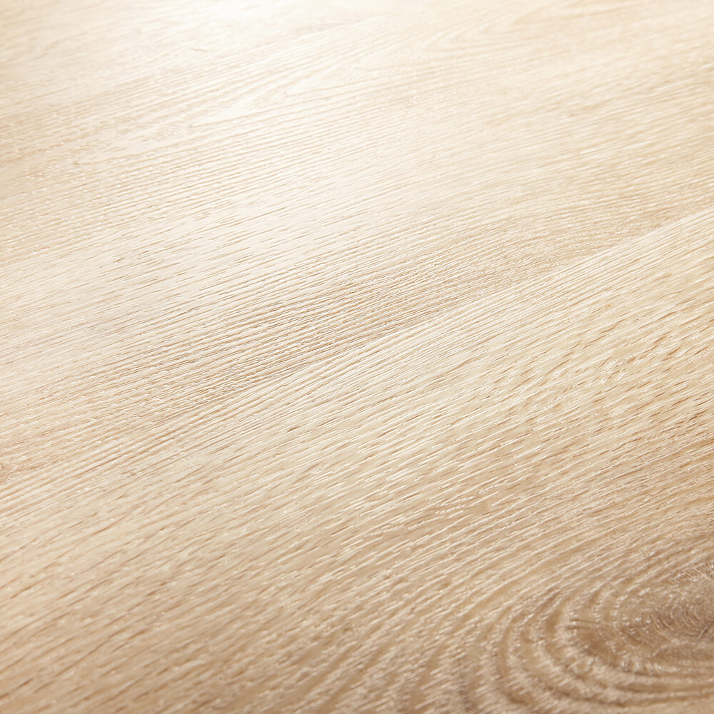 Die Oberfläche dieses erstklassigen Vinyl Designbodens ist Synchrongeprägt. Was bedeutet, dass das aufgedruckte Holzbild durch eine der Maserung folgenden Textur unterstützt wird und somit optisch und haptisch kaum noch von echtem Holz zu unterscheiden ist. Für ein angenehmes Wohlgefühl sorgt die fußwarme Nutzschicht mit einer Dicke von 0,55 mm, welche besonders positiv auffällt, wenn der Boden barfuß begangen wird. Zudem besitzt das Produkt eine integrierte Trittschalldämmung aus Kork.