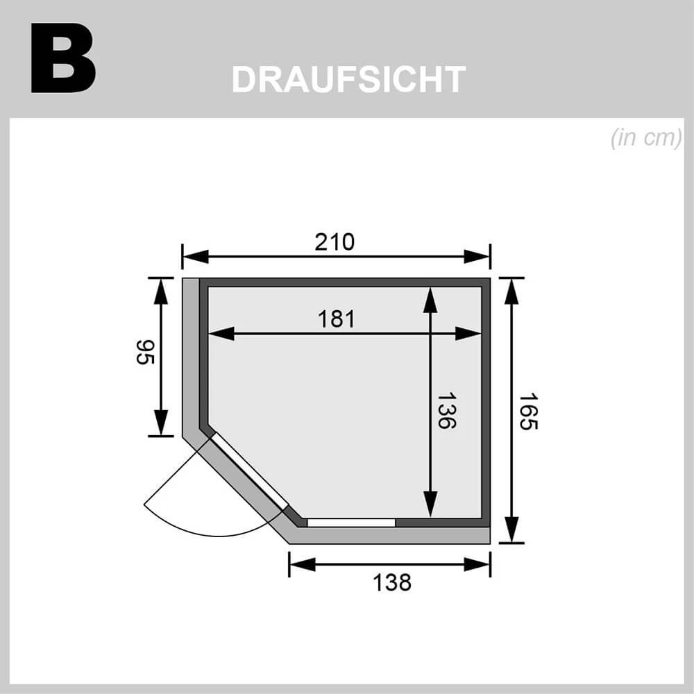 Schaffen Sie sich einen Ort der Entspannung und Erholen Sie sich vom Alltagsstress in Ihrer neuen Systemsauna Fiona 1. Eine 68mm starke Konstruktion, bestehend aus einer Rahmenkonstruktion mit 42mm starker Mineraldämmwolle und einer Verkleidung an der Sichtseite aus 12,5mm Spezial-Softline-Profilholz, hält die Wärme optimal im Saunainneren. Die Decke besteht aus einer 57mm starken Spezialplatte mit Mineraldämmwolle. Die Außenmaße der Sauna betragen 196 x 151 x 198 cm (B/T/H). Die 2 Saunabänke aus Espenholz laden zum Entspannen und Wohlfühlen ein. Mit einem optional erhältlichen 9kW-Saunaofen bringen Sie das Innere schnell auf Temperatur. Bei dem Ofen können Sie zwischen einer Variante mit integrierter Steuerung, einer Variante mit externer Steuerung oder einem 9kW Bio-Kombiofen wählen. So ist garantiert für jeden das Richtige dabei. Durch einen optionalen Dachkranz inkl. drei LED-Spots können Sie Ihre Sauna von außen beleuchten und sie so perfekt in Szene setzen. In den Innenraum gelangen Sie durch eine bronzierte Ganzglastür mit Einscheibensicherheitsglas mit Karibu-Türgriff. Um einen hellen Innenraum mit schönem Ambiente zu schaffen, verfügt die Sauna Fiona 1 über ein großzügiges bronziertes Fenster. Dieses sorgt, neben einer warmen Atmosphäre im Innenraum, auch für ein echtes Highlight in Ihrer Wellness-Oase. Durch die vorgefertigten Wand und Deckenelemente wird Ihnen ein einfacher Aufbau ermöglicht. Passen Sie die Sauna auf Ihre Bedürfnisse an mit unserem optional erhältlichen Zubehör. Eine ergonomische Kopfstütze für den optimalen Liegekomfort, eine ergonomische Rückenlehne zur perfekten Entspannung oder eine Saunaleuchte modern für das richtige Ambiente. Genießen Sie die Ruhe nach einem anstrengenden Arbeitstag bei einem ausgiebigen Saunagang und erholen Sie sich vom Alltag. Kreieren Sie sich Ihren eigenen Ort der Erholung und entspannen Sie vom Alltagsstress mit der Systemsauna.