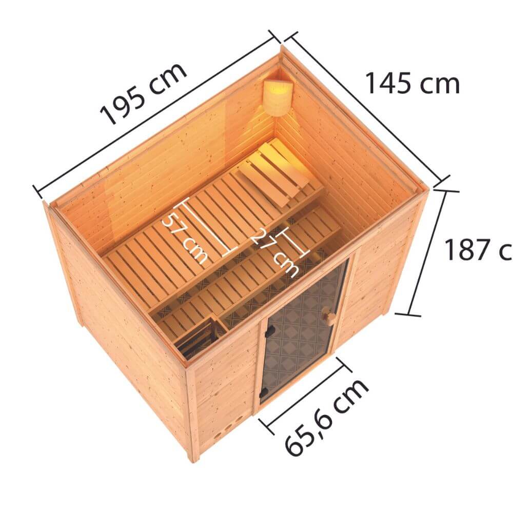 - inkl. 2 Bänken, Ofenschutzgitter & Kopfstütze