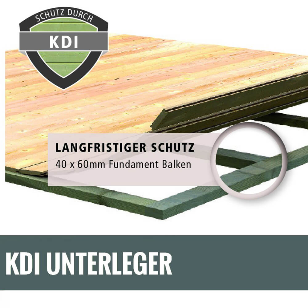 Vor aufsteigender Nässe schützen Sie ein Massivholzboden mit Nut und Feder und eine Rahmenkonstruktion aus kesseldruckimprägnierten Bodenbalken. Für ein angenehmes Liege- bzw. Sitzgefühl während des Saunierens sorgen drei 57cm breite Saunabänke aus weichem Espenholz.