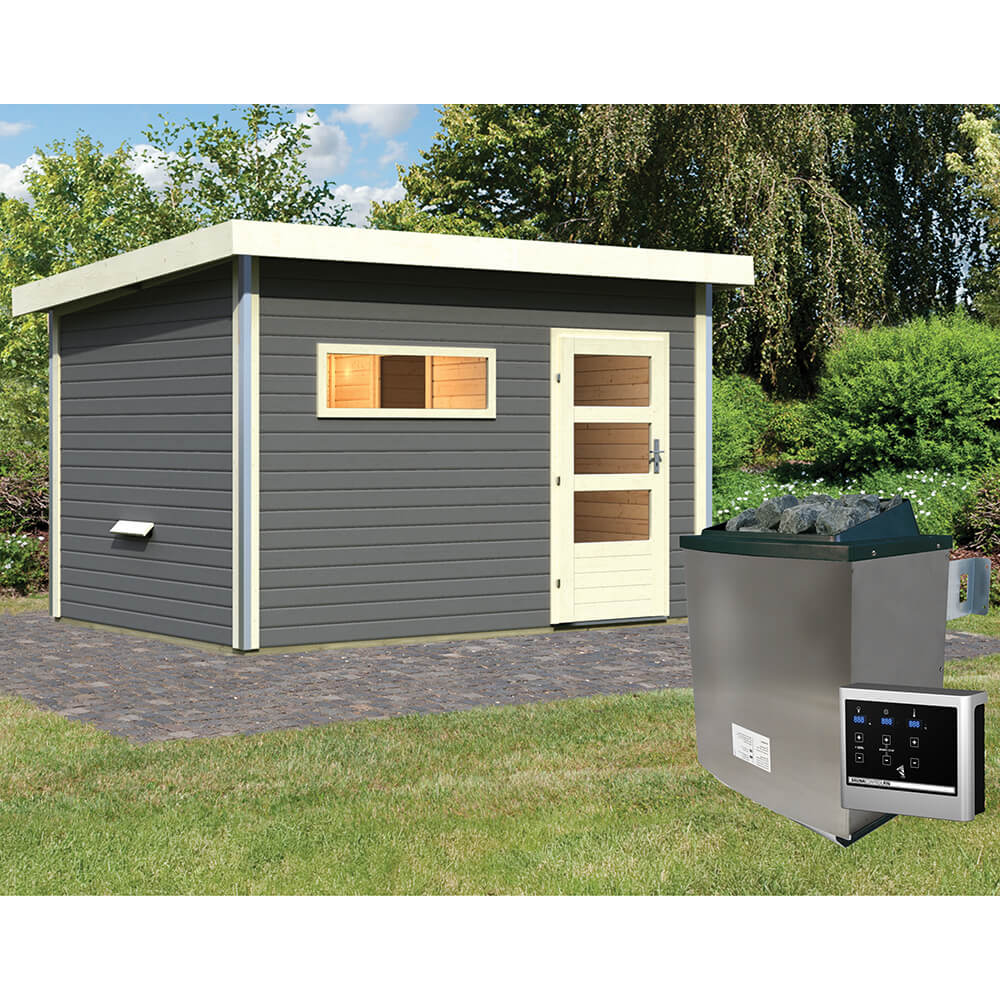 - inkl. 2 Bänken, bronzierter Saunatür & rechteckigem Fenster zum Selbsteinbau