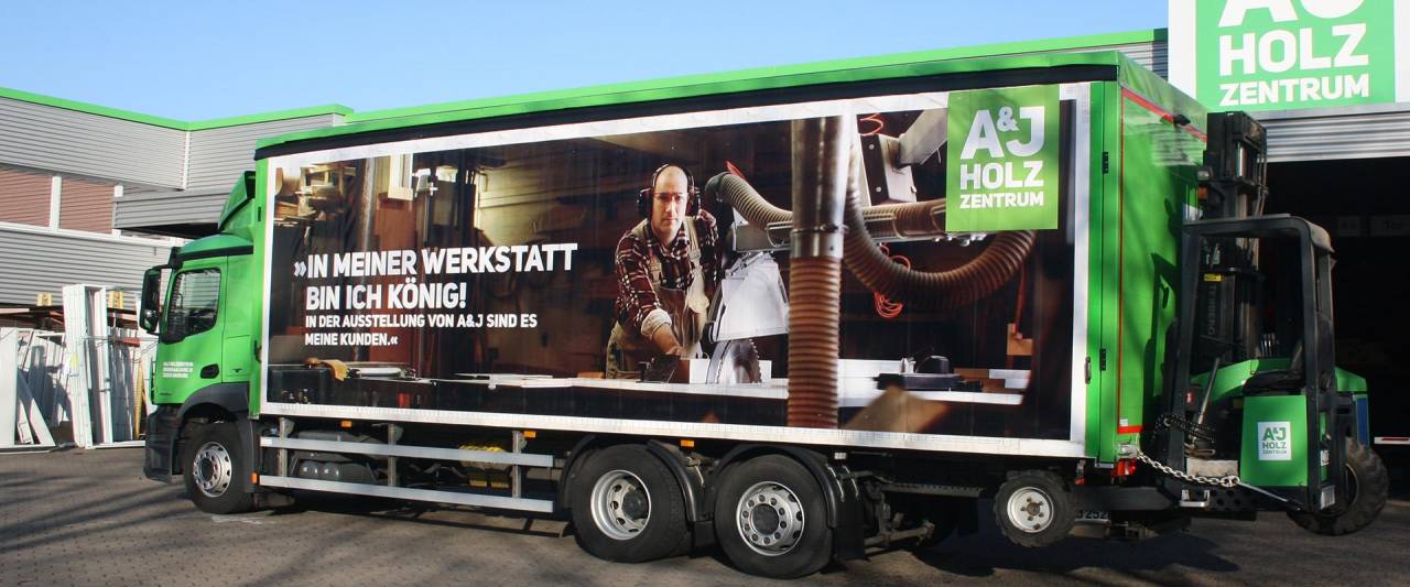 Unsere Fahrzeugflotte umfasst 19 LKWs und 1 Transporter und – nicht ganz ernst gemeint – einen A&J LKW im Miniaturwunderland. Entladen wird bei einem Großteil der Flotte über Mitnahmestapler, andernfalls über Hebebühne und Hubwagen oder an engen Stellen bzw. bei kleinen Mengen per Hand.