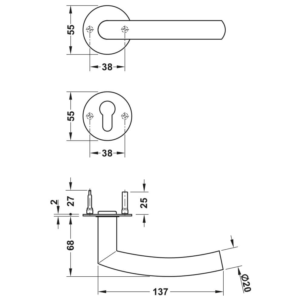 - Edelstahl matt, TS 35-45 mm, VK 8 mm