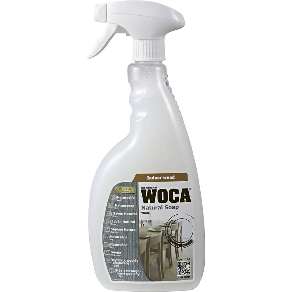 Die WOCA Naturseife in der Sprühflasche reinigt mild und pflegt geölte, geseifte und gewachste Oberflächen. Das gebrauchsfertige Spray erleichtert die Pflege von Möbeln, Türen, Tischplatten, Paneelen, Treppen und Böden.